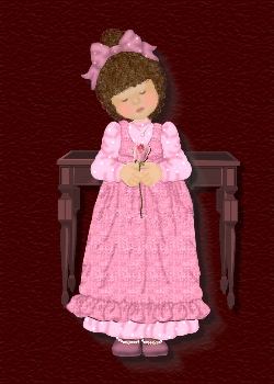 Her hair up in a ponytail, her favorite dress tied with a bow.